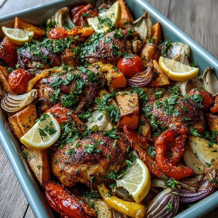 Save My kitchen was a disaster zone the night I threw this together for the first time. I'd forgotten to defrost the fish, the rice cooker was broken, and I had a friend arriving in forty minutes. I stared at my fridge: chicken thighs, a lonely sweet potato, some peppers going soft. I dumped everything onto a tray, shook piri-piri seasoning over it all like I was salting a driveway in winter, and crossed my fingers. What came out of that oven saved dinner and became my most-cooked recipe ever.