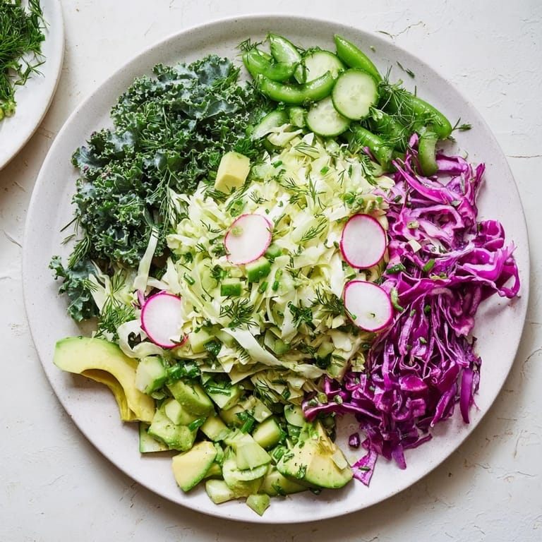 Save I threw this salad together on a gray Tuesday when my body was begging for something light and alive. The kitchen counter was covered in green everything, cabbage leaves curling, kale stems snapping under my knife, and the smell of fresh dill already clearing my head. It wasn't planned, just instinct. Sometimes you crave crunch and brightness more than comfort, and this salad delivers exactly that.