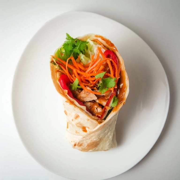 Swap the chicken for tofu if you press it well and crisp it up in the pan first, the sauce works just as well on anything with a good sear. I've tried it with shrimp too, which cooks even faster but needs a gentler hand so it doesn't turn rubbery. If you want more crunch, throw in cucumber or shredded cabbage, both add texture without making the wrap soggy. Some people like adding a handful of crushed peanuts or sesame seeds on top of the filling, which is never a bad call if you ask me.