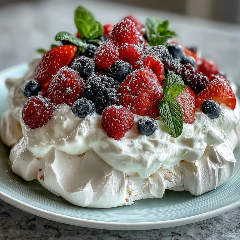 One Saturday, I made this Pavlova for a brunch gathering, and by mid-morning, the kitchen had turned chaotic with laughter, bowls clinking, and syrupy berry juice splattering my apron. My cousin tried swirling the whipped cream artistically, only for half a blackberry to roll right onto the floor—her giggle made the moment. Embarrassing as it seemed at the time, that perfectly imperfect dessert made everyone linger over their plates a little longer. These shared kitchen mishaps are part of the reason I look forward to making Pavlova for family occasions. It's that blend of anticipation and spontaneity that makes this dish feel special every time.