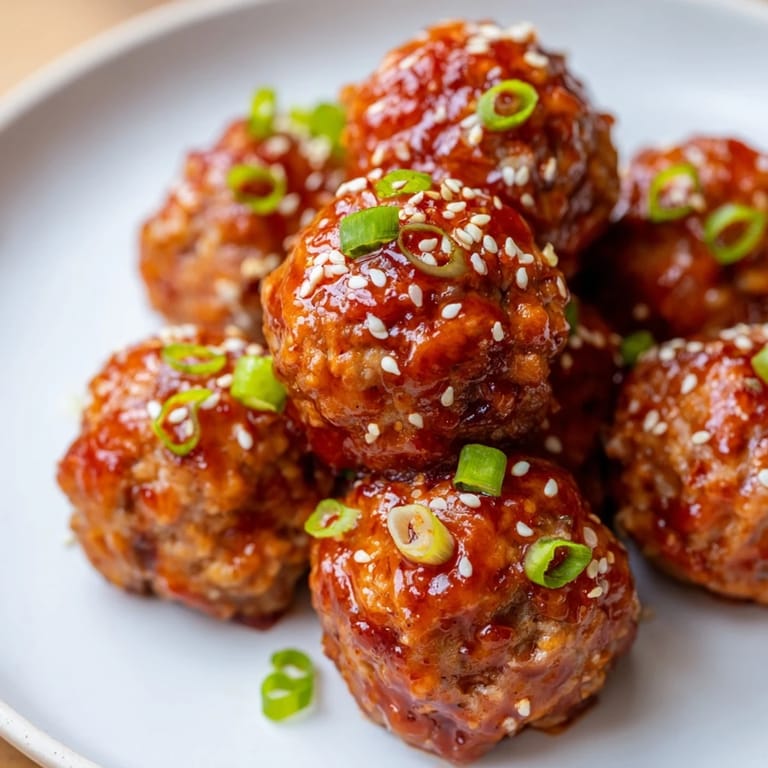 Save Juicy meatballs glazed with a sweet and spicy sriracha-honey sauce, perfect as crowd-pleasing appetizers or party bites.