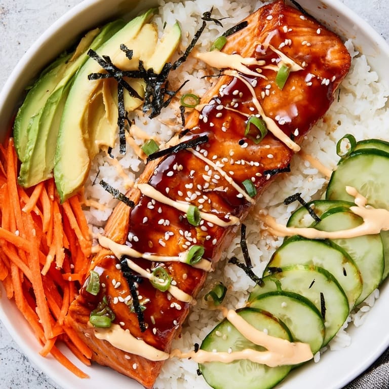 The glaze is where this bowl earns its stripes. It's not just about coating the salmon; it's about creating this moment where sweet, salty, and tangy unite into something that makes your mouth water. The soy sauce brings the salt, the mirin and honey bring warmth, and the rice vinegar keeps it all from becoming cloying. When you add that cornstarch slurry and watch it transform from liquid to glossy, you're basically watching alchemy happen in a pan.